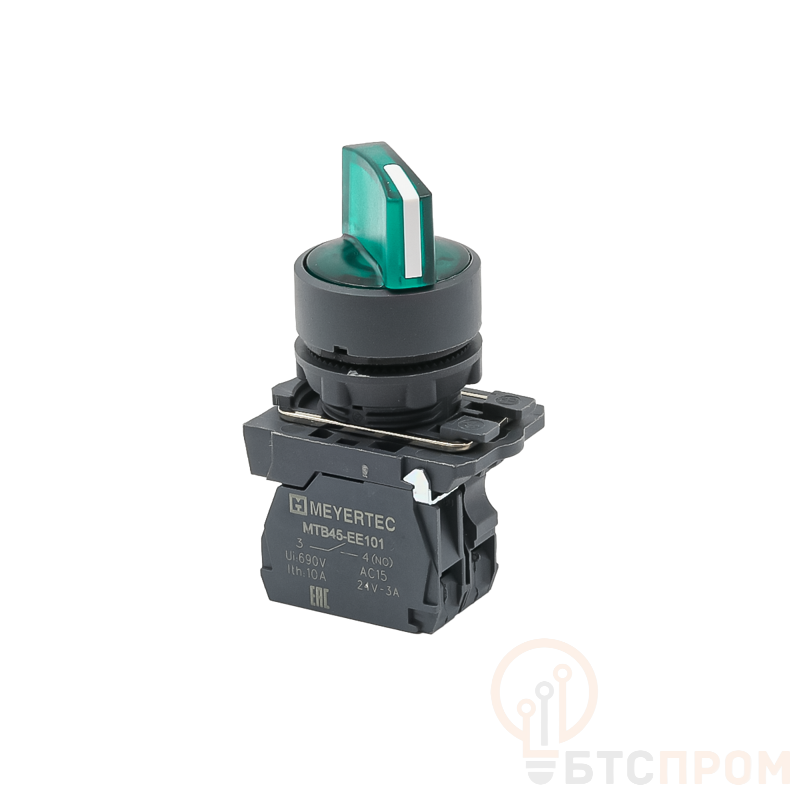 Переключатель на 3 положения с фиксацией и подсветкой 1NO 220В AC/DC IP65 пластик MTB5-AK33713 зел. ОВЕН 137289