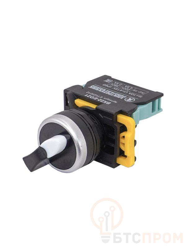 Устройство оснащено стандартной рукояткой квадратного сечения диаметром 22 мм, что позволяет устанавливать его в стандартные отверстия панелей и шкафов управления. Корпус переключателя обеспечивает высокую степень защиты IP65, гарантируя полную защиту от пыли и струй воды, что делает его пригодным для эксплуатации в сложных промышленных условиях, включая цеха с повышенной запыленностью и влажностью.