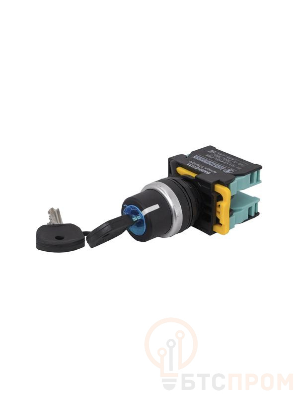 Переключатель ВК22-EG33 — это надежный аппарат управления серии ВК22 с ключом-замком для обеспечения безопасности и контроля доступа. Модель имеет 2 замыкающих контакта (2НО) и три фиксированных положения: I-O-II, что позволяет осуществлять переключение между двумя цепями с нейтральным (отключенным) средним положением.