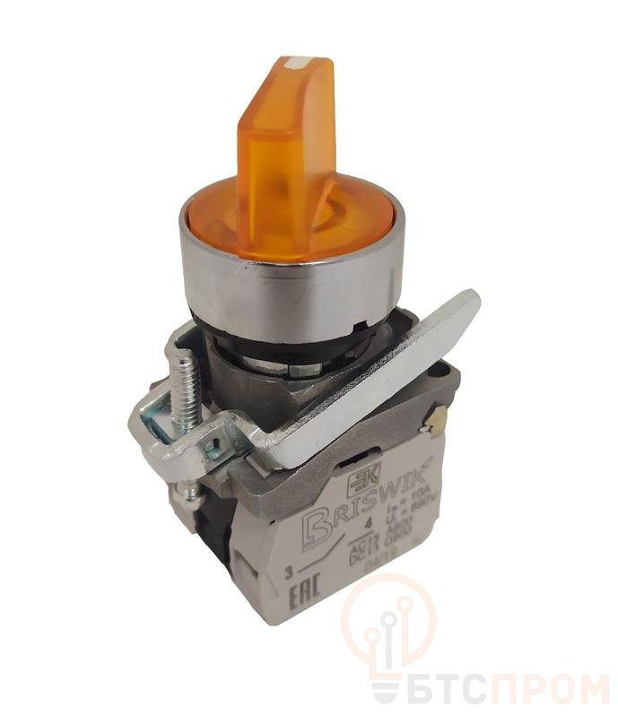 Переключатель КПЕ-1120-РЛС 24В рукоятка на 2 полож. с фикс. с индикацией основ. метал. 2з+0р 10А посадочное отверстие d22мм УХЛ2 IP40 желт. Реле и автоматика A8012-79684174