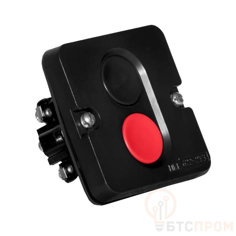Пост кноп. ПКЕ-622/2 "Пуск-Стоп" 1 черн. 1 красн. Электродеталь собой пластмассовую панель черного цвета с подпружиненными толкателями и контактными элементами, имеющими по два изолированных друг от друга электрических контакта. Контактные зажимы допускают присоединение к каждому зажиму одного медного или алюминиевого провода сечением 2,5 кв.мм или 2 медных проводов сечением не более 1,5 кв.мм. Кнопки плоские, красного и черного цвета. IP54. Применяются для встройки в нишу.