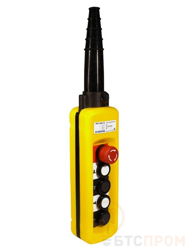 Пост кнопочный серии ПКТ используется для дистанционного управления с пола реверсивными и нереверсивными электромагнитными пускателями и контакторами электрических талей с односкоростными и двухскоростными электродвигателями в электрических цепях управления напряжением до 500 В переменного тока частотой 50 и 60 Гц и 415 В постоянного тока. * Высокая износостойкость управляющих элементов; * Возможность управления двухскоростными режимами; * Возможность использования в режиме аварийного останова; * Корпус из ABS-пластика, который является негорючим материалом; * Наличие уплотнения и сальника на кабельном вводе обеспечивает степень защиты IP65.
