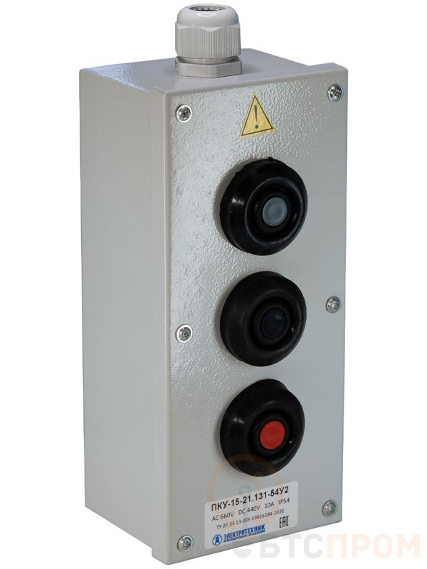 Пост кнопочный ПКУ-15-21.131-54У2 (2хВК30-10-11110-54(1з+1р) черн. + 1хВК30-10-11110-54(1з+1р) красн. + PG-19) пост управления Электротехник ET054489