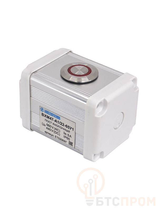 Пост управления кнопочный BXM47-A1/22-65У1 от производителя Электротехник — это надежное устройство для дистанционного управления различными промышленными системами и механизмами. Модель оснащена одной цилиндрической кнопкой с универсальной контактной группой 1C1NO1NC (1 замыкающий и 1 размыкающий контакт), что обеспечивает гибкость в коммутационных схемах. Корпус имеет высокую степень защиты, что позволяет использовать пост в сложных условиях цехов, на производственных линиях, для управления станками, крановым оборудованием и в системах автоматизации. Яркая красная кнопка предназначена для функций «Стоп» или аварийного отключения, обеспечивая безопасность персонала. Устройство отличается прочностью, долговечностью и стабильной работой.