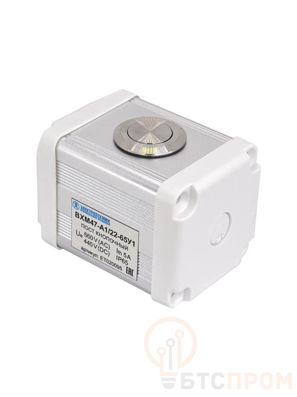 Пост управления кнопочный BXM47-A1/22-65У1 от бренда Электротехник — это надежное устройство для коммутации электрических цепей управления в стационарных установках. Модель имеет универсальную контактную группу 1C1NO1NC (одна замыкающая, одна размыкающая и одна переключающая контактная группа), что позволяет гибко реализовывать различные схемы управления, например, запуск, остановку или реверс.