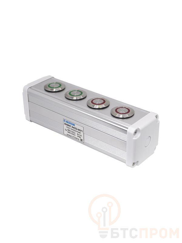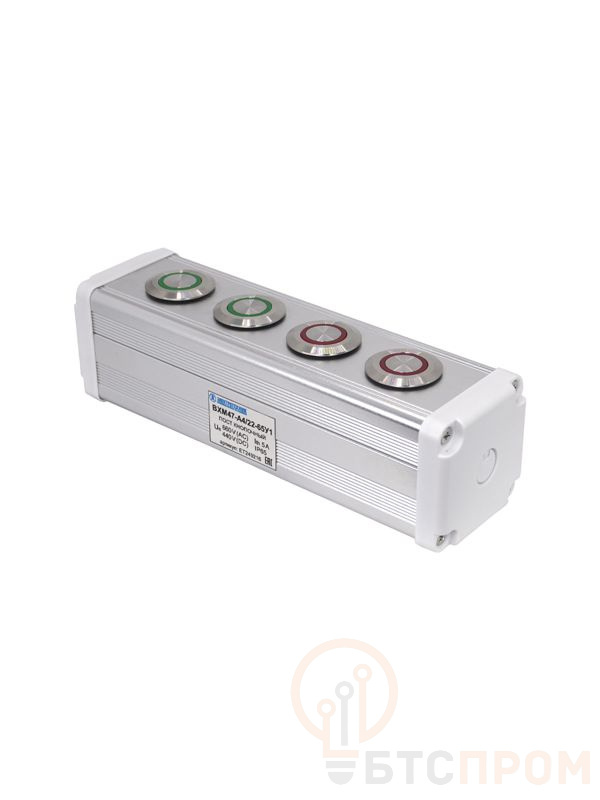 Пост управления BXM47-A4/22-65У1 от производителя «Электротехник» — это надежное устройство для дистанционного управления промышленным электрооборудованием в цепях переменного и постоянного тока. Модель оснащена четырьмя цилиндрическими кнопками: две зеленые и две красные, каждая из которых имеет 1 замыкающий и 1 размыкающий контакт (1C1NO1NC).
