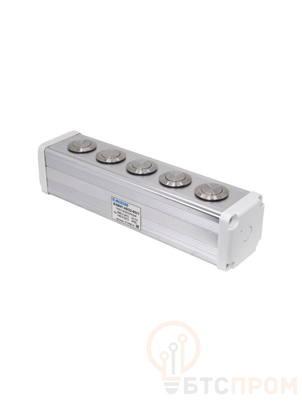 Пост управления BXM47-A5/22-65У1 от производителя Электротехник — это надежный аппарат для коммутации цепей управления, сигнализации и контроля в стационарных электроустановках. Модель оснащена пятью цилиндрическими кнопками с фиксируемой и самовозвратной контактными группами, что обеспечивает гибкость в построении систем управления. Общая конфигурация контактов — 1C1NO1NC (1 замыкающий + 1 размыкающий контакт на каждую кнопку).