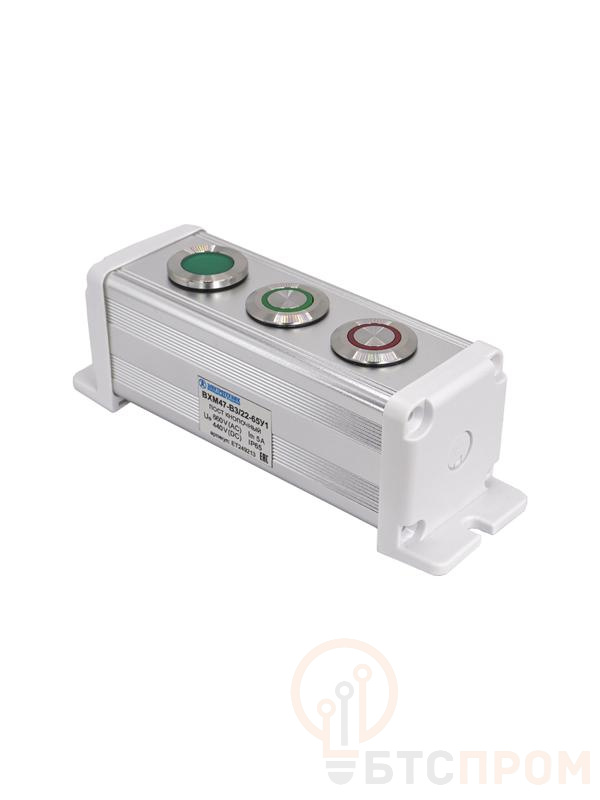Посты управления кнопочные ВХМ47 IP65 предназначены для коммутации электрических цепей управления переменного тока напряжением до 250 В частотой 50/60 Гц и постоянного тока до 110 В. Настенные посты используются для управления и индикации в электрических системах. Благодаря высокой степени защиты и материалу корпуса ВХМ47 можно использовать в неблагоприятных условиях из-за устойчивости к ударам, падениям и вибрации. Кнопочные посты управления имеют широкое применение в нефтяной, химической промышленности, металлургии и других местах с высокой степенью содержания пыли, слабых кислот и слабых щелочей, вызывающих коррозию. * Эргономичный дизайн; * Надёжная защита от попадания пыли, твёрдых тел и струй воды; * Возможность применения в различных отраслях; * Коммутационная и контрольная аппаратура антивандального исполнения; * Корпус из алюминиевого сплава с коррозионной стойкостью и высокой прочностью.