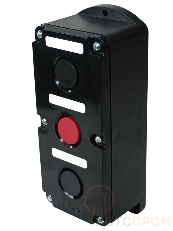 Модель оснащена тремя элементами (черный и красный цилиндры) и выполнена в накладном исполнении. Климатическое исполнение У3 позволяет эксплуатацию в умеренном климате. Пост применяется для управления электродвигателями, крановым оборудованием, а также в схемах автоматизированного контроля промышленных станков и конвейерных линий.