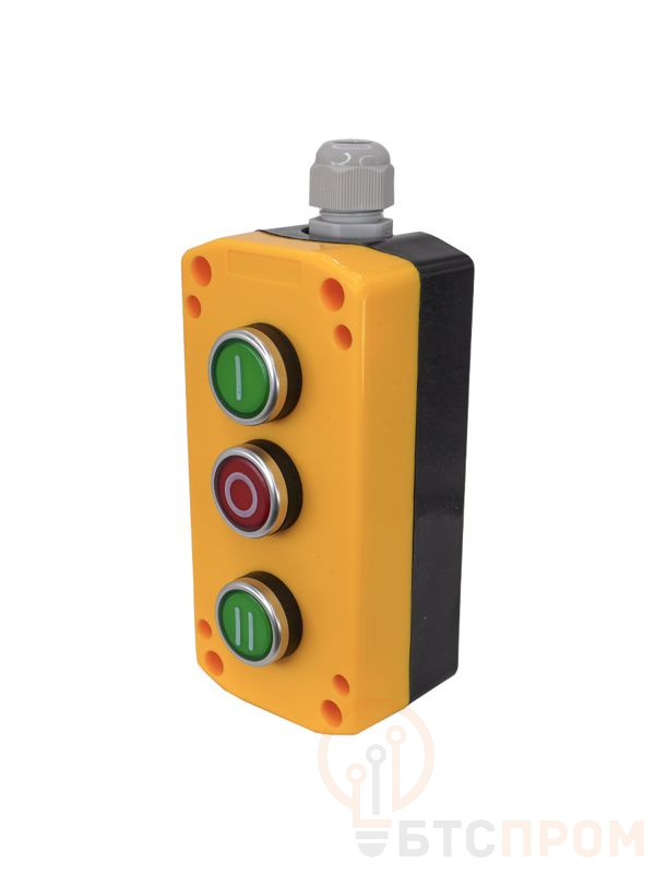 ПКУ22-3401-65У1, 1 зелёный цилиндр "I" (НО), 1 зелёный цилиндр "II" (НО), 1 красный цилиндр "O" (НЗ), пост управления, IP65 (ЭТ)