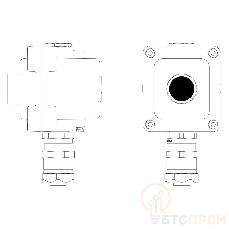 LCSD-01-B-MB-P1B(11)x1-PBMB-KAEPM2MHK-20 Взрывозащищенный местный пост управления из алюминия на 1 эл.управления. Маркировка: 1Ex d IIB T5 Gb / Ex tb IIIC T95°С Db / IP66 Температура окружающей среды: От -60°C до +40°C Элементы управления P1 – кнопка без фиксации. Цвет черный - 1шт. Кабельные вводы Снизу: Взрывозащищенный кабельный ввод серии КАЕРМ для бронированного инебронированного кабеля в металлорукаве COSMEC Dn:20 М20х1,5 d:5,8-12мм.Никелированнаялатунь IP66/IP68 Сверху: Взрывозащищенная заглушка Ex d e, М20x1,5. Никелированная латунь. IP66/67/68