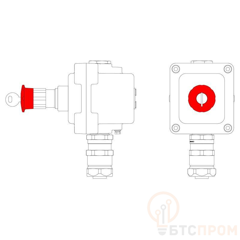 LCSD-01-B-MB-Y2R(11)x1-PBMB-ANP15BMB Взрывозащищенный местный пост управления из алюминия на 1 эл.управления. Маркировка: 1Ex d IIB T5 Gb / Ex tb IIIC T95°С Db / IP66 Температура окружающей среды: От -60°C до +40°C Элементы управления Y – переключатель с ключом. 2 положения (B и C), с фиксацией в обоих положениях, ключ может быть удален в обоих положения - 1шт. Кабельные вводы Снизу: Взрывозащищенный кабельный ввод ANP под небронированный кабель в металлорукаве M20х1,5 D5,5-13мм, Dn15мм. Никелированная латунь.IP66/68 Сверху: Взрывозащищенная заглушка Ex d e, М20x1,5. Никелированная латунь. IP66/67/68