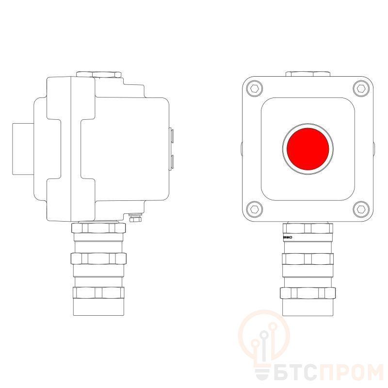 LCSD-01-B-MC-P1R(11)x1-PCMB-KA3MHK Взрывозащищенный местный пост управления из алюминия на 1 эл.управления. Маркировка: 1Ex d IIB T5 Gb / Ex tb IIIC T95°С Db / IP66 Температура окружающей среды: От -60°C до +40°C Элементы управления P1 – кнопка без фиксации. Цвет красный - 1шт. Кабельные вводы Снизу: Взрывозащищенный кабельный ввод серии КА для бронированного кабеляМ25х1,5 d:11,8-18мм D:15-25мм. Никелированная латунь IP66/IP68 Сверху: Взрывозащищенная заглушка Ex d e, М25x1,5. Никелированная латунь. IP66/67/68