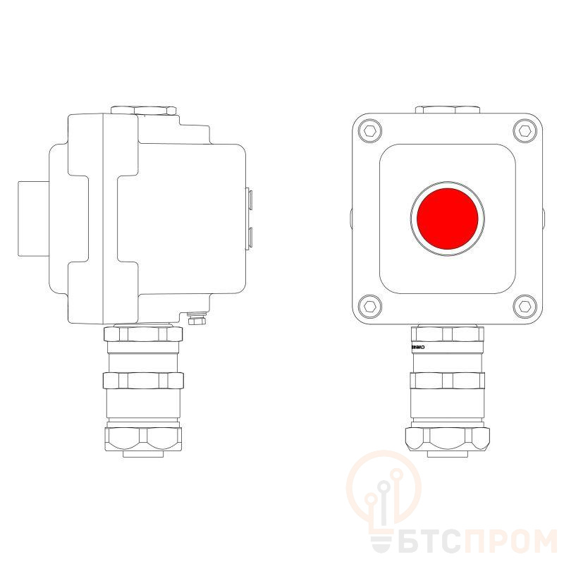 LCSD-01-B-MC-P1R(11)x1-PCMB-KAEPM3MHK-20 Взрывозащищенный местный пост управления из алюминия на 1 эл.управления. Маркировка: 1Ex d IIB T5 Gb / Ex tb IIIC T95°С Db / IP66 Температура окружающей среды: От -60°C до +40°C Элементы управления P1 – кнопка без фиксации. Цвет красный - 1шт. Кабельные вводы Снизу: Взрывозащищенный кабельный ввод серии КАЕРМ для бронированногоинебронированного кабеля в металлорукаве COSMEC Dn:20 М25х1,5 d:11,8-18мм. Никелированная латунь IP66/IP68 Сверху: Взрывозащищенная заглушка Ex d e, М25x1,5. Никелированная латунь. IP66/67/68