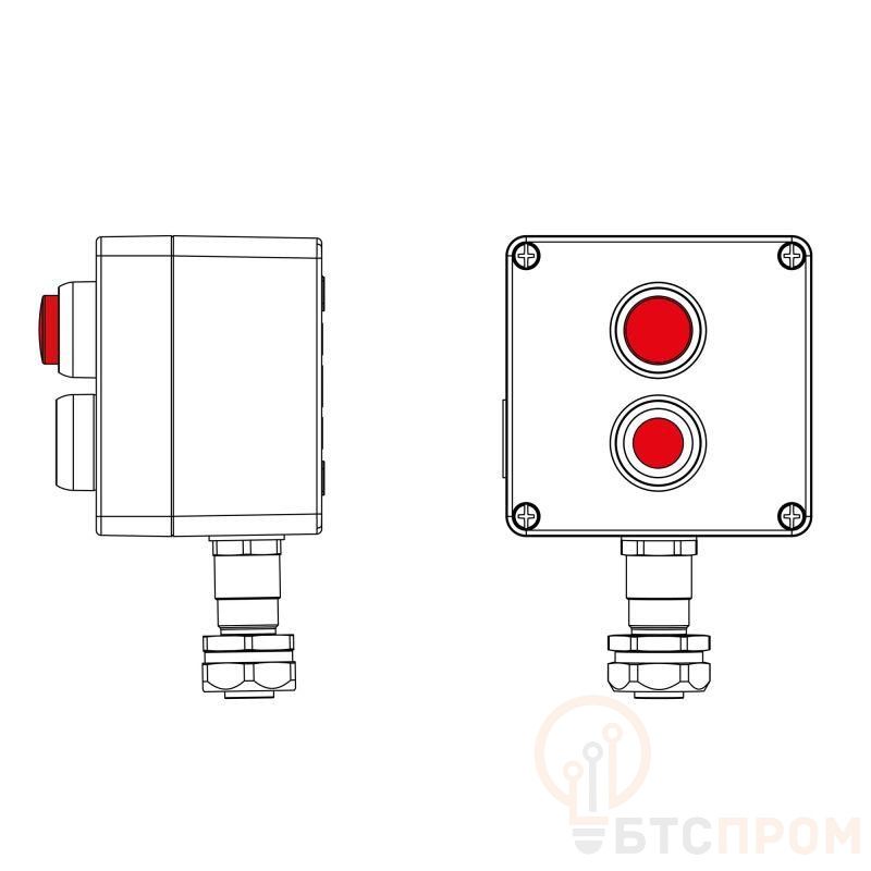 Взрывозащищенный пост управления из алюминия CPE-A-12-(1xP1R(11)-1xLR(250))-1xKAEPM2MHK-20(C)1Ex d e IIC Т5 Gb / Ex tb IIIC T95°C Db IP66 Un=400 В, In=16 А Взрывозащищенный пост управления из алюминия 120x120x90мм 1Ex d e IIC Т5 Gb / Ex tb IIIC T95°C Db IP66 Температурный режим Т5 40°C Количество элементов управления: Контактный блок 1NC/1NO + Кнопка P1 Красная 1 шт. Сигнальный блок 20V-250V AC/DC + Светофильтр Красный 1 шт. Количество клемм: Вводы Сторона C: Взрывозащищенный кабельный ввод серии КАЕРМ для бронированного инебронированного кабеля в металлорукаве COSMEC Dn:20 М20х1,5 d:5,8-12мм.Никелированнаялатунь IP66/IP68 1 шт.
