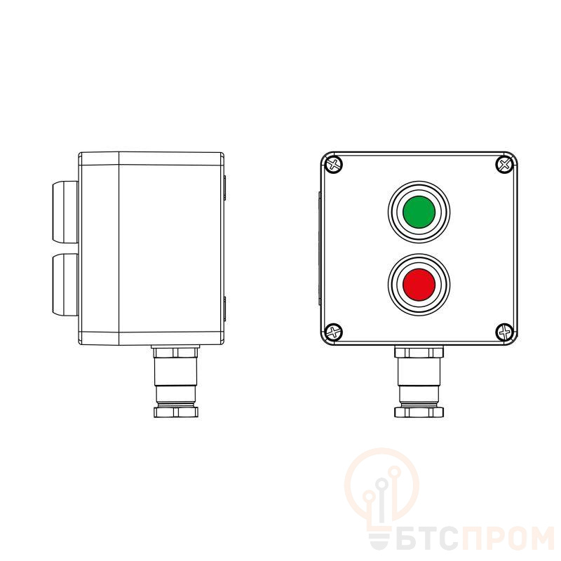 Взрывозащищенный пост управления из полиэстера CPE-P-03-(1xP1G(11)-1xP1R(11))-1xKH2MHK(C)1Ex d e IIC Т5 Gb / Ex tb IIIC T95°C Db IP66/КЗ Un=400 В, In=16 А Взрывозащищенный пост управления GRP 120x120x90мм 1Ex d e IIC Т5 Gb / Ex tb IIIC T95°C Db IP66 Температурный режим Т5 40°C Кольца заземления Количество элементов управления: Контактный блок 1NC/1NO + Кнопка P1 Зеленая 1 шт. Контактный блок 1NC/1NO + Кнопка P1 Красная 1 шт. Количество клемм: Вводы Сторона C: Взрывозащищенный кабельный ввод серии КН для небронированного кабеляМ20х1,5 D:5,8-12мм. Никелированная латунь IP66/IP68 1 шт.