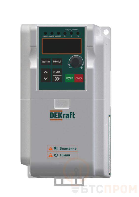 Преобразователи частоты ПЧ-510; Входное напряжение 220В 1 фаза; IP 20; Тяжёлый режим работы Рдв. - 0.4 кВт; Частотные преобразователи Dekraft представляют широкий спектр полностью протестированых и готовых к подключению решений для управления электродвигателями.