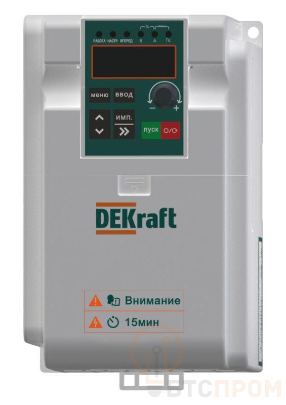 Преобразователи частоты ПЧ-510; Входное напряжение 220В 1 фаза; IP 20; Тяжёлый режим работы Рдв. - 1.5 кВт; Частотные преобразователи Dekraft представляют широкий спектр полностью протестированых и готовых к подключению решений для управления электродвигателями.