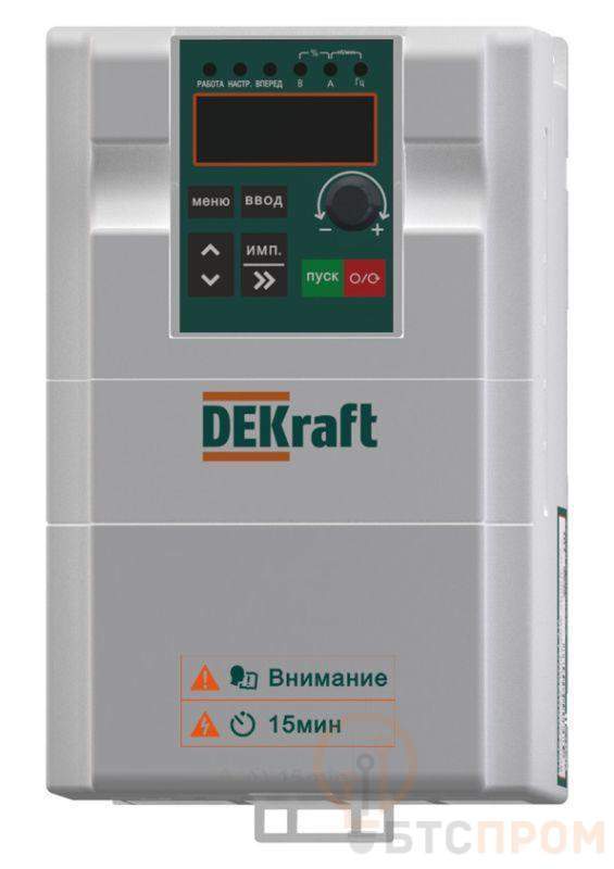 Преобразователи частоты ПЧ-510; Входное напряжение 380В 3 фазы; IP 20; тормозной модуль; Тяжёлый режим работы Рдв. - 3.7 кВт; Частотные преобразователи DEKraft представляют широкий спектр полностью протестированых и готовых к подключению решений для управления электродвигателями.