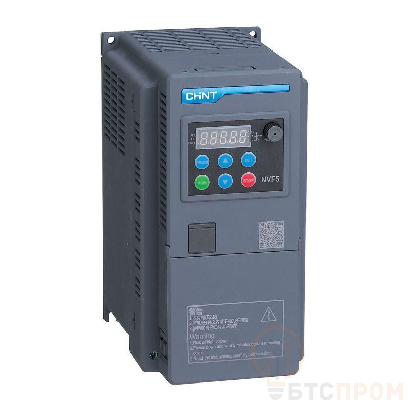 Частотный преобразователь NVF5-0.75/TS4-B от CHINT — это современное устройство для плавного управления скоростью вращения трехфазных асинхронных электродвигателей. Модель с номинальной мощностью 0.75 кВт и напряжением питания 380В предназначена для эффективного и точного контроля технологических процессов.
