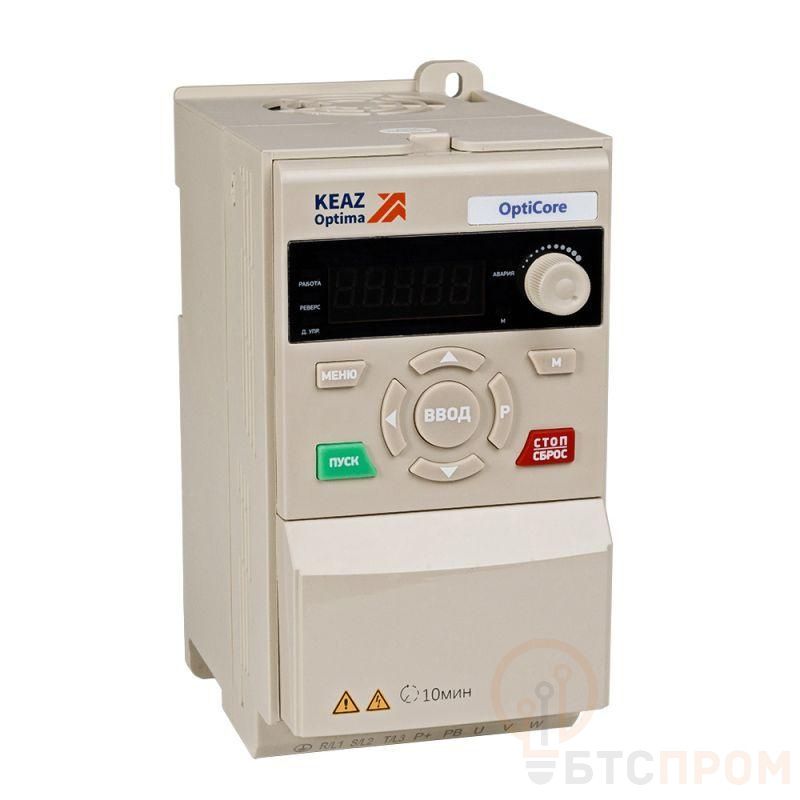 Преобразователь частоты OptiCore B100-Н7K5-380-Т с номинальным напряжением питания 380 В предназначен для работы с номинальной мощностью электродвигателя для тяжелого режима 7,5 кВт. Максимальный ток в установившемся режиме 19 А. Тормозной модуль встроен.