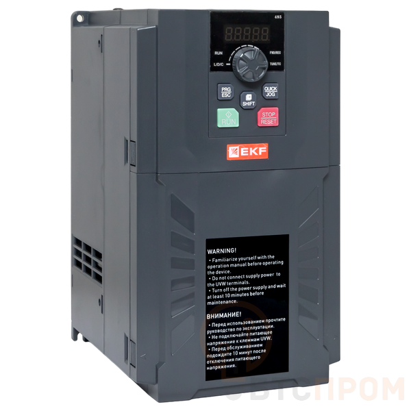 Преобразователь частоты PRO-Drive 150 EKF (далее преобразователь) предназначен для управления скоростью вращения электродвигателей, применяемых в широком спектре промышленного оборудования. Преобразователь обеспечивает точное поддержание скорости вращения или момента на валу двигателя в зависимости от внешних факторов. Преобразователи соответствуют требованиям ГОСТ IEC 61800-5-1, ГОСТ IEC 61800-3.