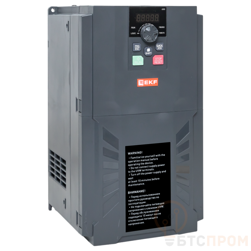 Преобразователь частоты PRO-Drive 150 EKF (далее преобразователь) предназначен для управления скоростью вращения электродвигателей, применяемых в широком спектре промышленного оборудования. Преобразователь обеспечивает точное поддержание скорости вращения или момента на валу двигателя в зависимости от внешних факторов. Преобразователи соответствуют требованиям ГОСТ IEC 61800-5-1, ГОСТ IEC 61800-3.