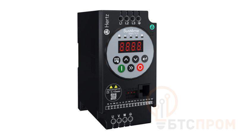 Преобразователь частоты серии SystemeVar Hertz типа STV050 для насосных и вентиляторных применений. Номинальные характеристики (P-тип): Un = 3Ф 400В; Pn = 0,75 кВт; In = 2,1 А. Перегрузочная способность (P-тип): 120% в течение 60 с, 150% в течение 3 с (время цикла = 300 с). Номинальные характеристики (G-тип): Un = 3Ф 400В; Pn = 0,75 кВт; In = 2,1 А. Перегрузочная способность (P-тип): 150% в течение 60 с, 180% в течение 3с (время цикла = 300 с). Выходная частота: до 599 Гц. Диапазон питающего напряжения: 1Ф 200В (-15%) ~ 240В (+10%). Встроенная (несъёмная) LED панель оператора. Встроенный-ЭМС фильтр (Класс С3, согл. EN 61800-3). Коммуникационный протокол: Modbus RTU. Кол-во входов/выходов: 4DI, 1AI, 1DO, 1RO, 1AO. Степень защиты: IP20. Покрытие плат (Класс 3С2, согл. EN 60721-3-3). Температура окружающей среды: от -20°C до +50°C (до +40°C без ухудшения номинальных характеристик). Скалярное управление, векторное управление (без обратной связи по скорости). Функции для насосных и вентиляторных применений. Пожарный режим с функцией контроля целостности кабеля двигателя. Монтаж “бок-о-бок” (минимальное расстояние между соседними ПЧ: 0 мм). Типоразмер B. ШxВxГ (мм): 72х142х110. Вес: 0,7 кг.