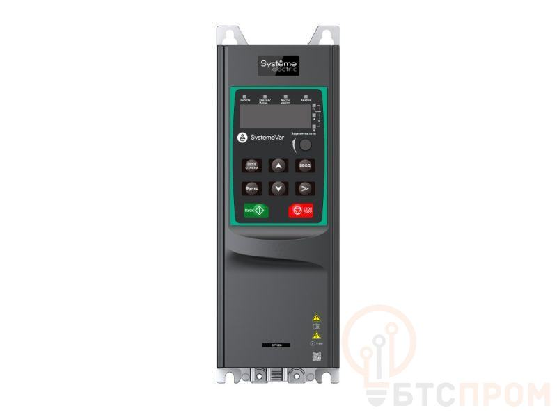 Преобразователь частоты серии SystemeVar, типа STV600 для насосных и вентиляторных применений. Номинальные характеристики (P-тип): Un = 3Ф 400В; Pn = 5,5 кВт; In = 13 А. Диапазон питающего напряжения: 3Ф 380В (-15%) ~ 440В (+10%). Номинальная мощность: 5,5 кВт (P-тип: 110% в течение 60с. Номинальный ток: 13 А (P-тип). Выходная частота: до 400 Гц. Без встроенного ЭМС-фильтра. Без встроенного DC-реактора. Без встроенного моторного дросселя. Панель оператора: LED интегрированная, несъёмная (опционально доступны: выносная LED (SEOP-1203) и выносная LCD (SEOP-1205) панели оператора). Интерфейс расширения функциональности: 2 слота (SLOT1, SLOT2). Встроенный протокол связи: Modbus RTU (опционально доступны: PROFIBUS DP (SEOP-1301), PROFINET (SEOP-1302), CAN/CANopen (SEOP-1307). Кол-во входов/выходов: 6DI, 2AI, 1DO, 2AO, 1RO* (опционально доступны: плата расширения входов/выходов: SEOP-1628 (+ 4DI, 1AI, 1DO, 2RO), плата расширения релейных входов/выходов SEOP-1630 (+2DI, 6RO). Примечание “1RO*” – 2RO только для STV600, произведённых после 15 марта 2023 года (они имеют круглую дополнительную маркировку на упаковке “QCPASS”). Поддерживает ПО для ввода в эксплуатацию и диагностики (SystemeVAR Studio). Степень защиты IP20. Скалярное и векторное (без датчика обратной связи) управление. Функции для насосных и вентиляторных применений. Пожарный режим. Монтаж: настенный, фланцевый. Тип монтажа: встраиваемый (подразумевается установка в оболочку (шкаф управления). Конформное покрытие печатных плат (Класс 3С3, согл. EN 60721-3-3). Температура окружающей среды: от -10°C до +50°C (до +40°C без ухудшения номинальных характеристик). Охлаждение: принудительное. Габаритные размеры (ШхВхГ), мм: 89х259х211,5. Вес: 2,4 кг.