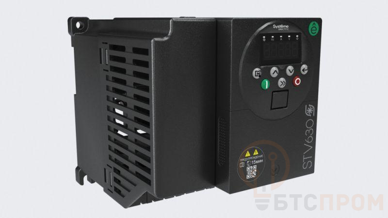 Преобразователь частоты SystemeVar STV630 для насосных и вентиляторных применений. Номинальные характеристики: Un = 3Ф 380В; Pn = 4 кВт; In = 9 А. LED панель оператора. Без встроенного DC-реактора. Встроенный ЭМС фильтр класса С3. Встроенный Modbus RTU. Кол-во входов/выходов: 5DI, 1AI, 1DO, 1RO, 1AO. Степень защиты IP20. Без слота для карты расширения. Без встроенного светодиода состояния. Покрытие плат класса 3С3. Типоразмер A2. ШxВxГ (мм): 109х129х148. Вес: 0,96 кг.