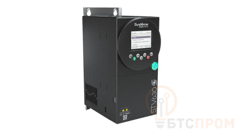 Преобразователь частоты SystemeVar STV630 для насосных и вентиляторных применений. Номинальные характеристики: Un = 3Ф 380В; Pn = 5,5 кВт; In = 13 А. LCD панель оператора. Со встроенным DC-реактором. Встроенный ЭМС фильтр класса С3. Встроенный Modbus RTU. Кол-во входов/выходов: 6DI, 2AI, 1DO, 2RO, 2AO, 1PTC. Степень защиты IP20. Один слот для карты расширения. Со встроенным светодиодом состояния. Покрытие плат класса 3С3. Типоразмер B1. ШxВxГ (мм): 118х274x174. Вес: 3,2 кг.