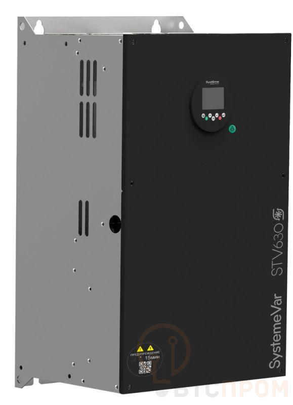 Преобразователь частоты SystemeVar STV630 для насосных и вентиляторных применений. Номинальные характеристики: Un = 3Ф 380В; Pn = 90 кВт; In = 176 А. LED панель оператора. Без встроенного DC-реактора. Встроенный ЭМС фильтр класса С3. Встроенный Modbus RTU. Кол-во входов/выходов: 6DI, 2AI, 1DO, 2RO, 2AO, 1PTC. Степень защиты IP20. Один слот для карты расширения. Со встроенным светодиодом состояния. Покрытие плат класса 3С3. Типоразмер C3. ШxВxГ (мм): 338х576x256. Вес: 32 кг.