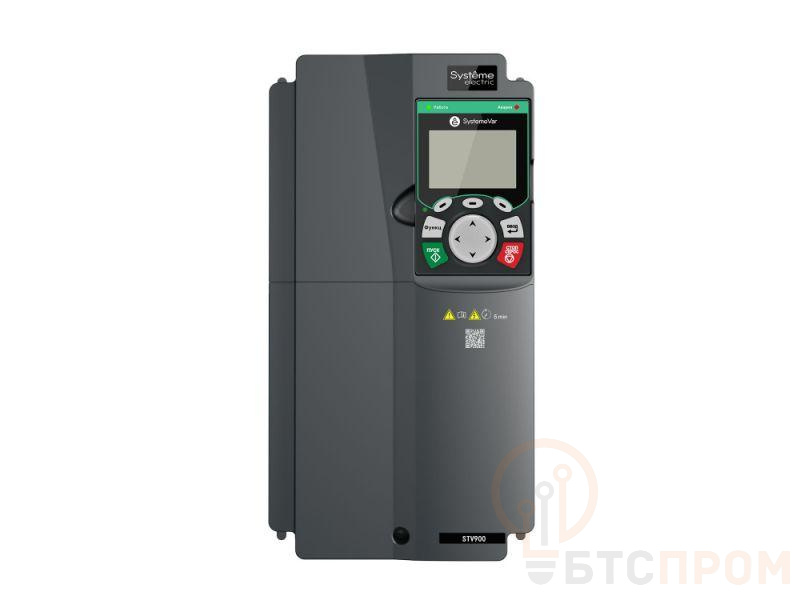Преобразователь частоты SystemeVar 900 (STV900). Номинальная мощность: 11 кВт (G-тип: перегрузочная способность: 150% в течение 60с, 180% в течение 10с, 200% в течение 1с. Несущая частота ШИМ: 8 кГц), 15 кВт (P-тип: 120% в течение 60с. Несущая частота ШИМ: 4 кГц). Номинальный ток: 25 А (G-тип) / 32 А (P-тип). Питающее напряжение 3Ф 380В (-15%) ~ 440В (+10%). Степень защиты IP20. Габаритные размеры (ДхШхВ), мм: 170х220х320. Вес: 6 кг.