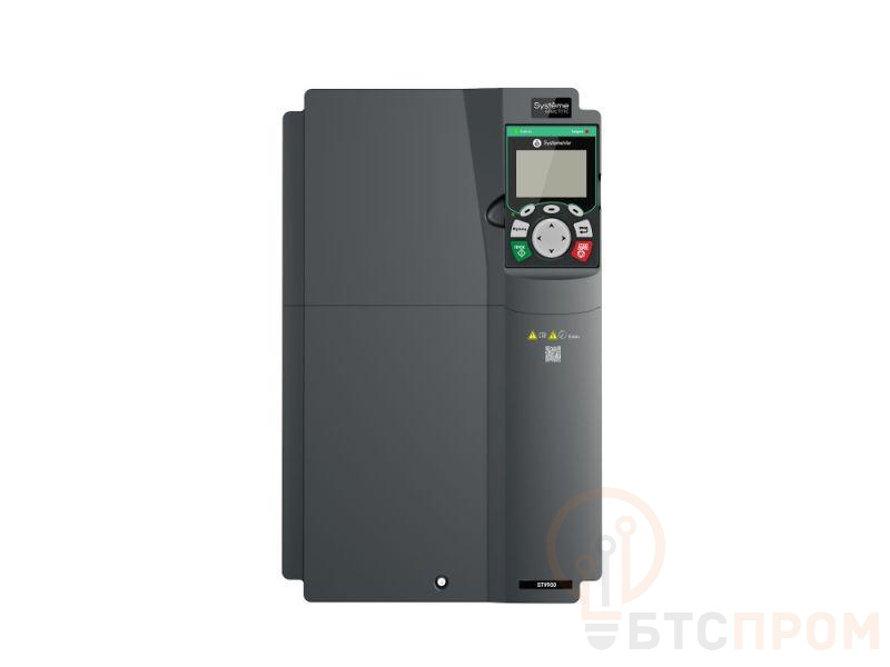 Преобразователь частоты SystemeVar 900 (STV900). Номинальная мощность: 30 кВт (G-тип: перегрузочная способность: 150% в течение 60с, 180% в течение 10с, 200% в течение 1с. Несущая частота ШИМ: 4 кГц), 37 кВт (P-тип: 120% в течение 60с. Несущая частота ШИМ: 2 кГц). Номинальный ток: 60 А (G-тип) / 75 А (P-тип). Питающее напряжение 3Ф 380В (-15%) ~ 440В (+10%). Степень защиты IP20. Габаритные размеры (ДхШхВ), мм: 200х223х400. Вес: 16 кг.