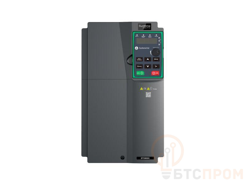 Преобразователь частоты SystemeVar 900H (STV900H). Номинальная мощность: 18,5 кВт (G-тип: перегрузочная способность: 150% в течение 60с, 180% в течение 10с, 200% в течение 1с. Несущая частота ШИМ: 4 кГц). Номинальный ток: 38 А (G-тип). Питающее напряжение 3Ф 380В (-15%) ~ 440В (+10%). Степень защиты IP20. Габаритные размеры (ДхШхВ), мм: 200х208х340,6. Вес: 8,5 кг. Встроенный модуль торможения, встроенный DC-реактор, функция безопасности STO (Safe Torque Off), функция управление тормозом и другие функции для крановых применений. Целевое применение: Кран/Подъемник.