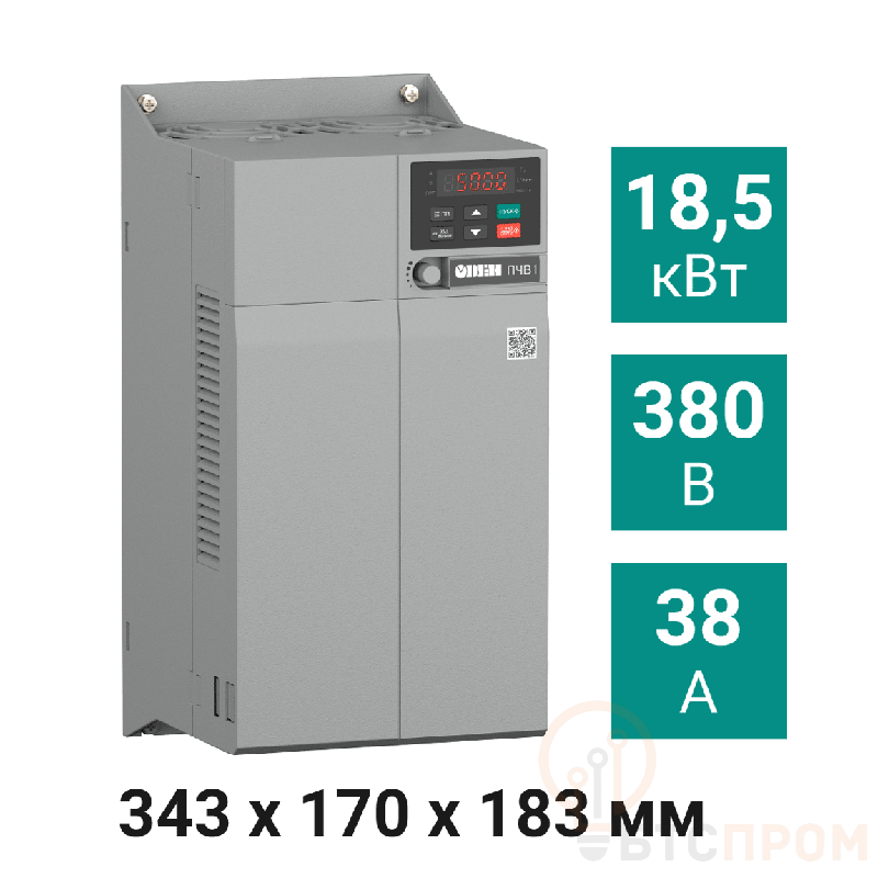 Векторный преобразователь частоты ПЧВ1-18К-В от ОВЕН — это современное высокотехнологичное устройство для точного управления скоростью вращения трехфазных асинхронных двигателей. Номинальная мощность прибора составляет 18 кВт, а напряжение питания — 380 В. Преобразователь обеспечивает плавный пуск и остановку двигателя, что значительно снижает механические нагрузки и продлевает срок службы оборудования. Благодаря векторному алгоритму управления без датчика обратной связи достигается высокая точность поддержания момента и скорости даже на низких оборотах.