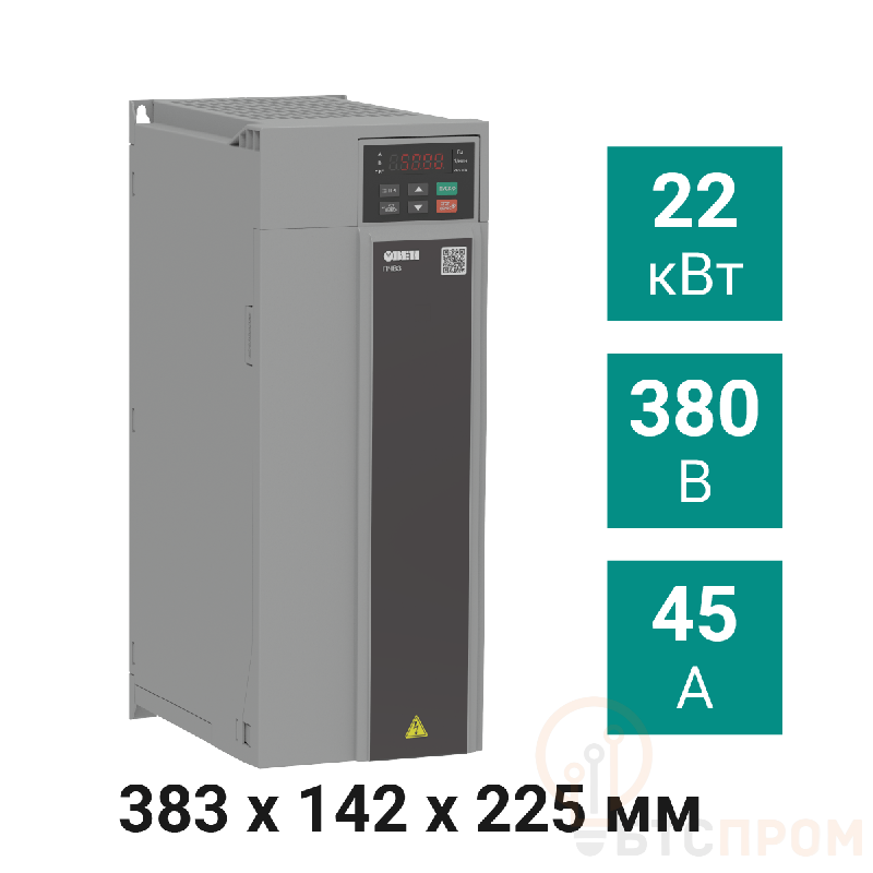 Преобразователь частоты векторный ПЧВ3-22К-В от ОВЕН — это современное устройство для точного управления скоростью вращения трехфазных асинхронных электродвигателей. Номинальная мощность прибора составляет 22 кВт, что делает его идеальным решением для мощного промышленного оборудования.