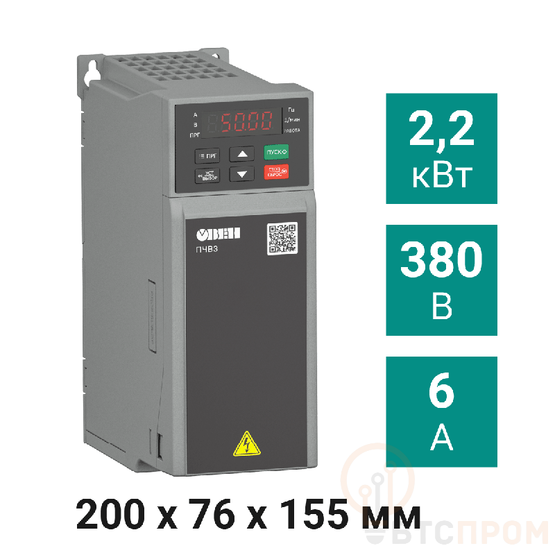 Векторный преобразователь частоты ПЧВ3-2К2-В от компании ОВЕН (арт. 131648) — это современное устройство для точного и энергоэффективного управления трехфазными асинхронными электродвигателями. Номинальная мощность прибора составляет 2.2 кВт, а номинальный выходной ток — 5.5 А, что делает его идеальным решением для задач, требующих высокого момента на низких скоростях и точного поддержания скорости вращения.