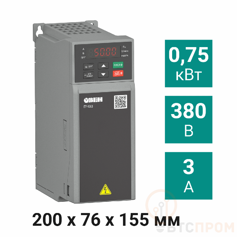 Векторный преобразователь частоты ПЧВ3-К75-В от ОВЕН — это современное устройство для точного управления скоростью вращения трехфазных асинхронных двигателей мощностью 75 кВт. Прибор обеспечивает плавный пуск и остановку, позволяя гибко регулировать производительность технологического оборудования.