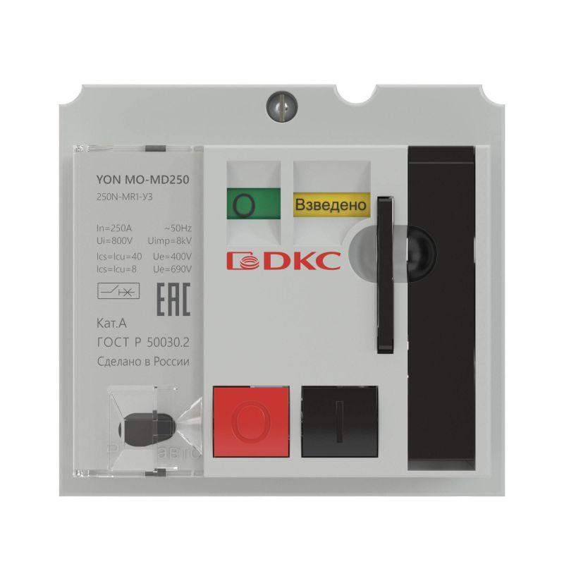 Автоматические выключатели в литом корпусе могут оснащаться двигательным приводом MO-MD250 с накопителем энергии, обеспечивающим замыкание и размыкание выключателя. Он предназначен для дистанционного и ручного управления выключателем. Режимы управления: электрический (авто) или ручной (Р).