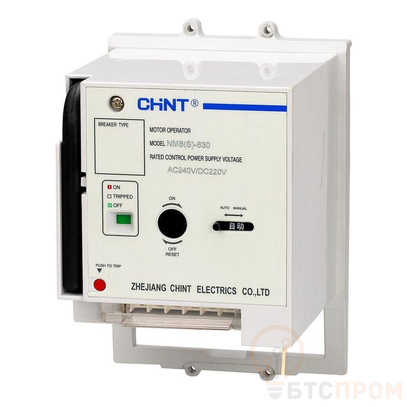 Привод моторный MOD23-M8 — это надежный электромеханический аппарат, предназначенный для дистанционного управления автоматическими выключателями серии NM8N-400/630 (R) от компании CHINT. Устройство работает от сетей переменного тока AC 220-240В или постоянного тока DC 220В, что обеспечивает его универсальность применения.