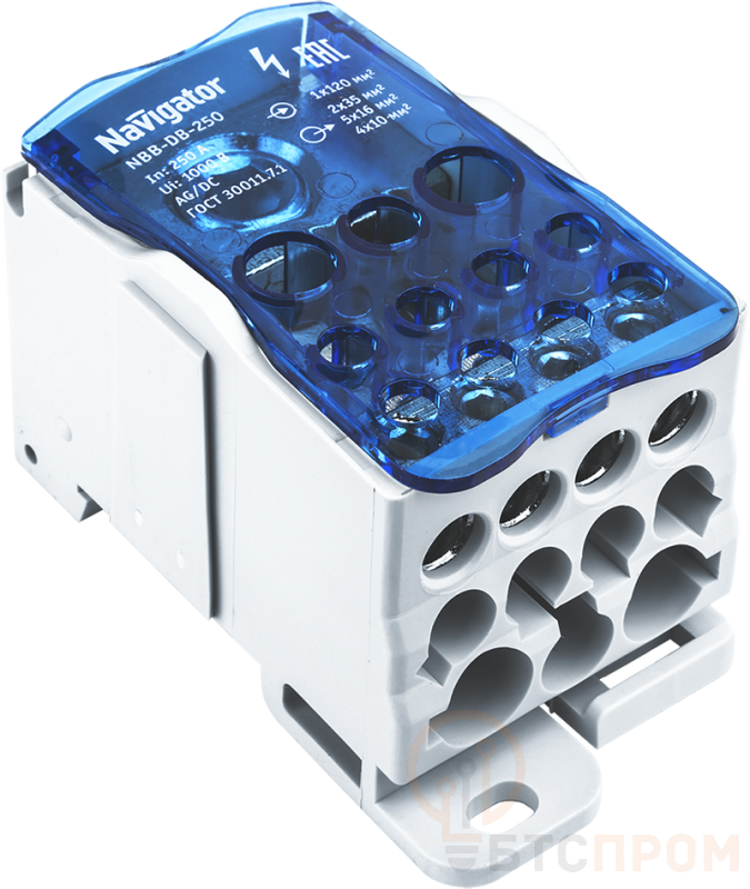 Блок распределительный Navigator 61081 NBB-DB-250 — это надежный и компактный электротехнический модуль, предназначенный для безопасного распределения электрической энергии в однофазных сетях. Корпус устройства выполнен из прочного самозатухающего пластика, что обеспечивает высокий уровень пожарной безопасности. Модель оснащена одной вводной и двумя выходными клеммами на Din-рейку, что значительно упрощает монтаж и организацию проводки.