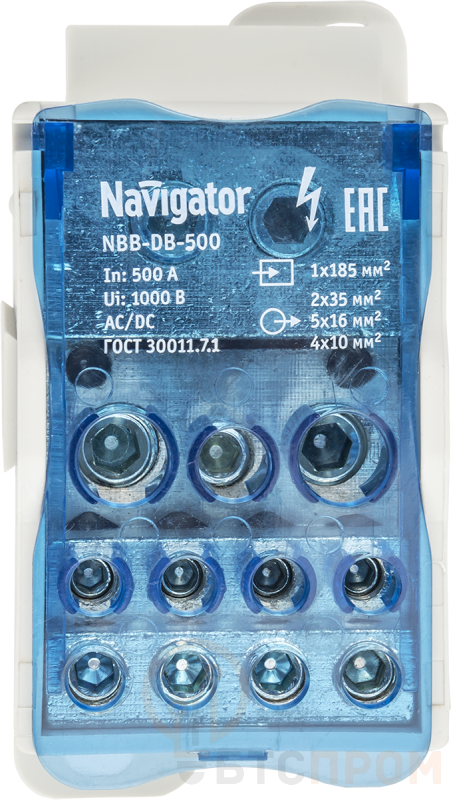 Блок распределительный Navigator 61083 NBB-DB-500 — это надежный и компактный модуль для организации электропитания в промышленных и бытовых щитах. Корпус устройства выполнен из самозатухающего пластика, что обеспечивает высокий уровень пожарной безопасности. Модель рассчитана на номинальное напряжение до 400 В и номинальный ток до 63 А.