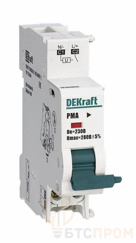 Расцепитель минимального напряжения РМН-101 для для серий ВА-101, ВА-103 NEW, ДИФ-101, ДИФ-101S, ДИФ-102, ДИФ-103 4,5кА NEW; предназначен для дистанционного отключения выключателя при снижении напряжения; ном. напряжение 220 В; порог срабатывания 0,35-0,70 Ue; порог восстановления 161 В; потр.мощность 3,5 ВА; ширина 18 мм; присоединение к аппарату слева.