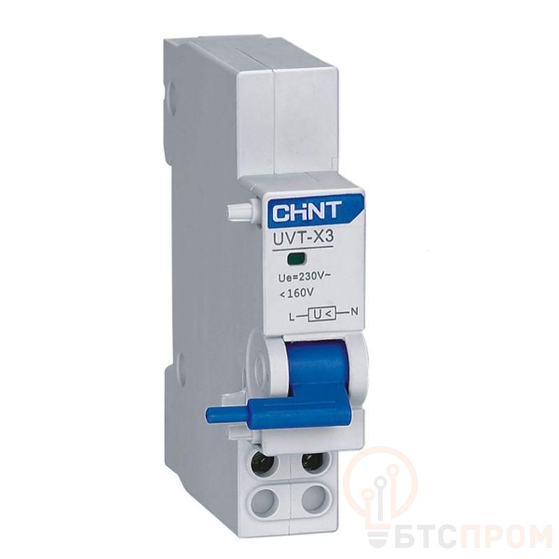 Расцепитель минимального/максимального напряжения серии OUVT-X3 предназначен для аварийного отключения при недопустимом повышении/понижении напряжения электрической сети. При снижении напряжения контролируемой цепи ниже 35% Ue или увеличения до 95–105% Uvo, расцепитель выдает сигнал на отключение автоматического выключателя. При повышении напряжения контролируемой цепи более 35% Ue или более 105% Uvo, расцепитель предотвращает включение автоматического выключателя. При нахождении напряжения питания в пределах от 85% Ue и до 95% Uvo, автоматический выключатель должен нормально отключаться. Верхний предел напряжения контролируемой цепи должен быть меньше 110% Uvo. Механический и электрический ресурс после сборки расцепителя с автоматическим выключателем составляет 4000 циклов, из которых по 500 циклов для отключения по перенапряжению и по пониженному напряжению и 3000 циклов для отключения размыкание/замыкание выключателя. Расцепитель серии OUVT-X3 применяется совместно с автоматическим выключателем серии NXB-125; он устанавливается с правой стороны выключателя и прищелкивается к нему. Основные характеристики: Напряжение управления – АС240В Уставка срабатывания защиты от повышения напряжения – АС280В (1 ± 5%) Напряжение гарантированного неотключения – 0,85–1,10Ue Напряжение отключения – 0,7–0,35 Us Напряжение гарантированного невключения – 0,35 Us Механическая износостойкость – 4000 циклов В/О Электрическая износостойкость – 4000 циклов В/О Степень загрязнения – 2 Степень защиты – IP20 Ширина – 18 мм Монтаж – на симметричную DIN-рейку 35 мм