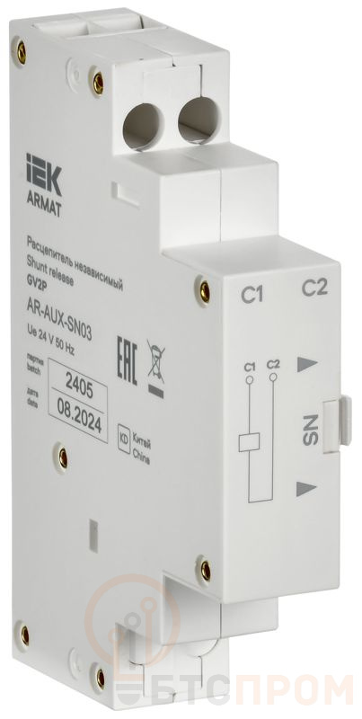 Расцепитель независимый для автоматического выключателя защиты двигателя серии ARMAT предназначен для дистанционного отключения выключателя. При срабатывании расцепителя его цепь питания размыкается встроенным контактом. Расцепитель соответствует требованиям ТР ТС 004/2011, ТР ЕАЭС 037/2016.