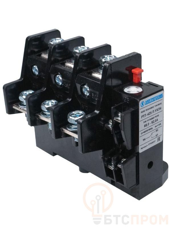 Реле электротепловое токовое РТТ-425 П УХЛ4 80А 68.0 - 92.0А 660В/50Гц 1з+1р ручной возврат IP00 Электротехник ET529227