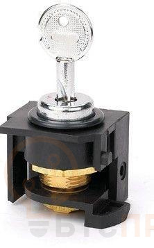 Когда автоматический выключатель находится в отсоединенном положении, его можно заблокировать от включения с помощью замка с ключом. В этом случае автоматический выключатель может быть включен только тогда, когда замок открыт ключом и ключ не вынут из замочной скважины. Существует три варианта такого способа блокировки (последние два используются в распределительной системе с двумя линиями и одним соединительным интерфейсом): один замок, один ключ; два замка, один ключ; три замка, два ключа