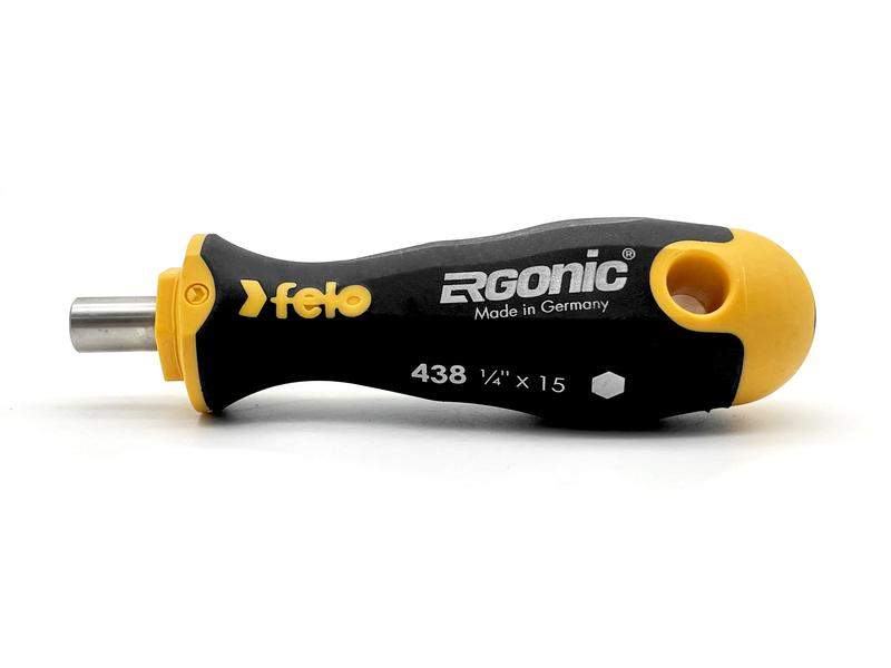 Рукоятка Felo предназначена для монтажно-демонтажных работ с использованием стандартных бит 1/4" с различным крепежом в местах, где пространство ограничено. Рукоятка ERGONIC - первая в мире бесшовная рукоятка, которая адаптируется под руку любого пользователя, снижает нагрузку и утомляемость, а также увеличивает комфорт и максимальный крутящий момент. Продуманный дизайн рукоятки не позволяет инструменту скатываться с поверхности. Внешнее покрытие рукоятки имеет высокую устойчивость к царапинам и ГСМ. Общая длина - 121 мм.