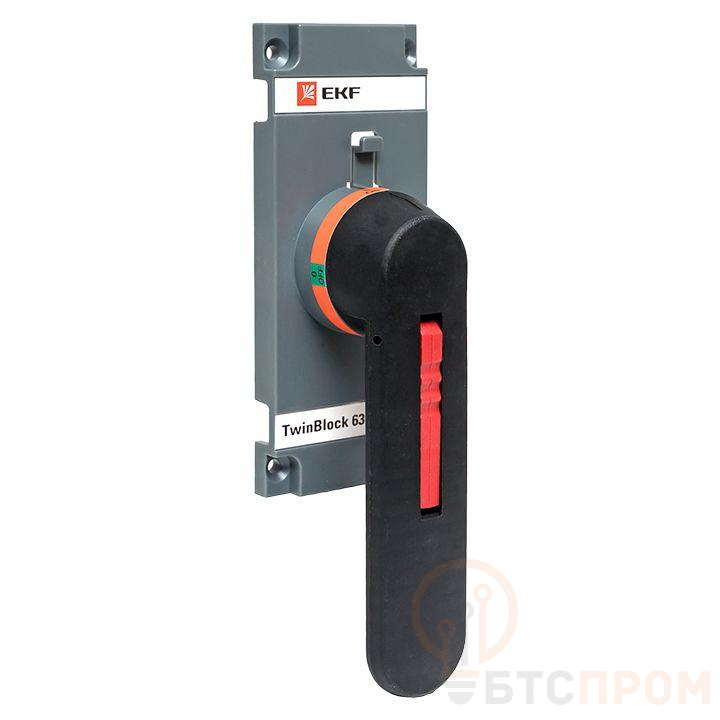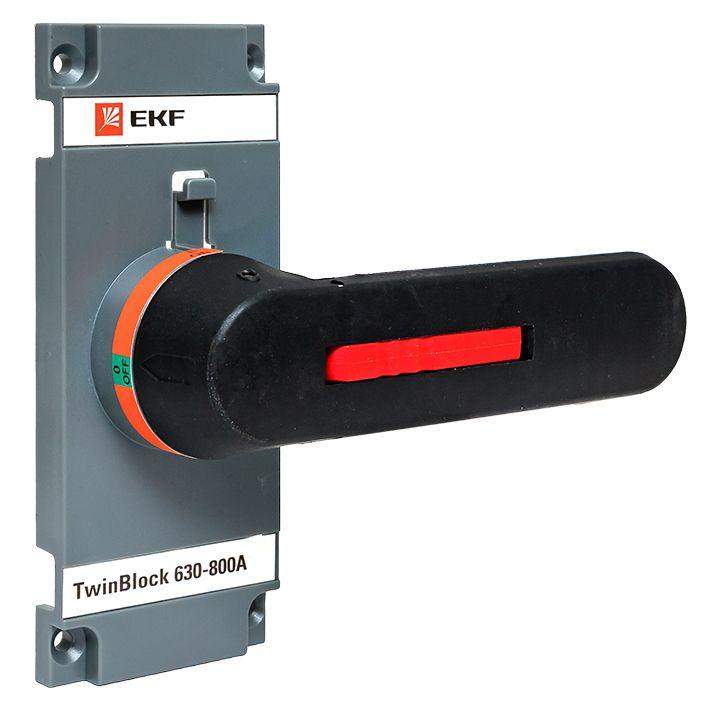 Рукоятка управления для прямой установки на рубильники TwinBlock EKF. Рубильники серии TwinBlock предназначены для пропускания номинальных токов, включения и отключения электрических цепей номинальным напряжением до 690 В переменного тока частотой 50 и 60 Гц в устройствах распределения электрической энергии. Для моделей без рукоятки предусмотрены два типа рукояток: выносная рукоятка для управления через дверь и рукоятка управления для прямой установки на рубильник.